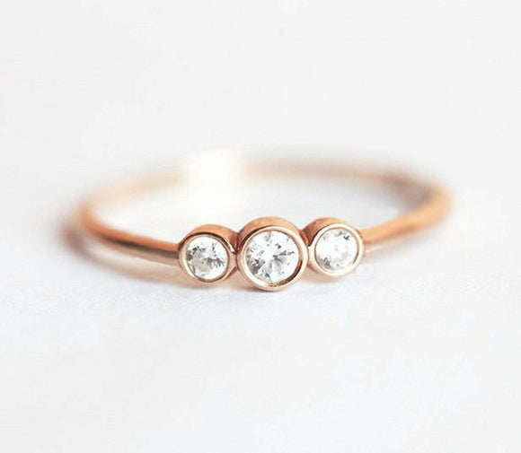 0.4ct Round Cut Diamond Engagement Ring 14k Rose Gold Finish Trilogy Minimalist