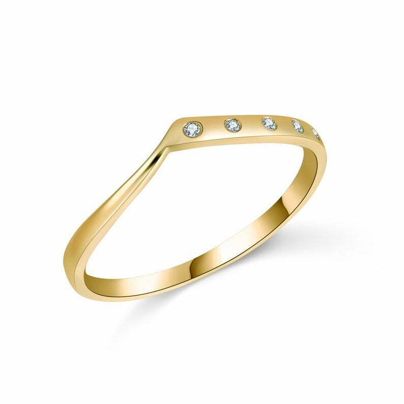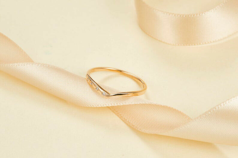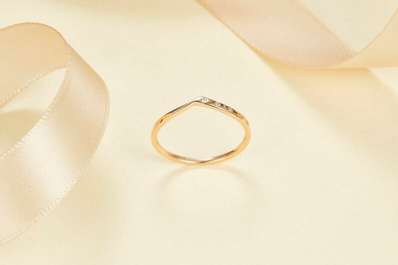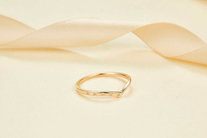 0.03ct Round Cut VVS1D Diamond Wedding Band Ring Minimalist 14k Yellow Gold Over