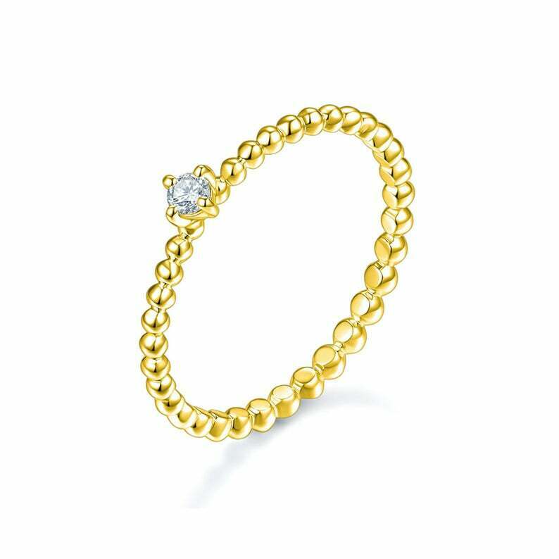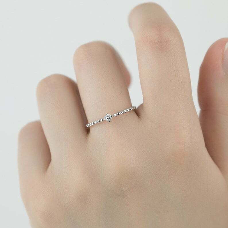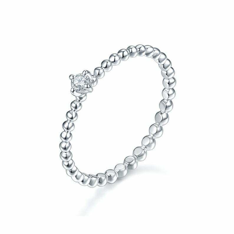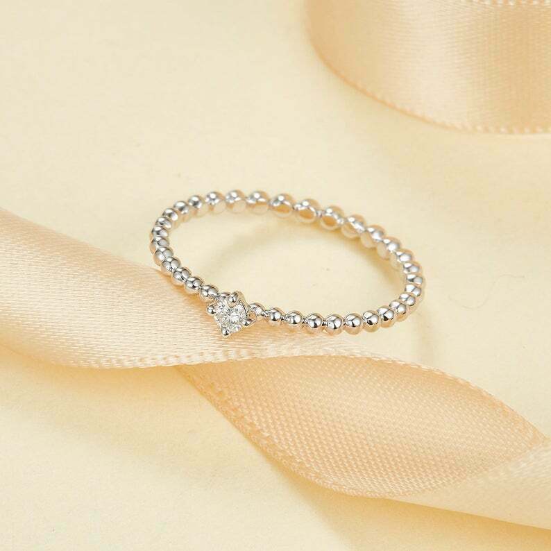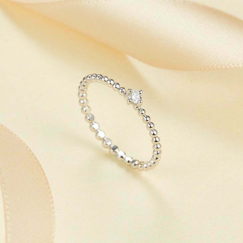 0.06ct Round Cut Diamond Engagement Ring Beaded Solitaire 14k White Gold Finish