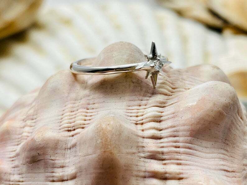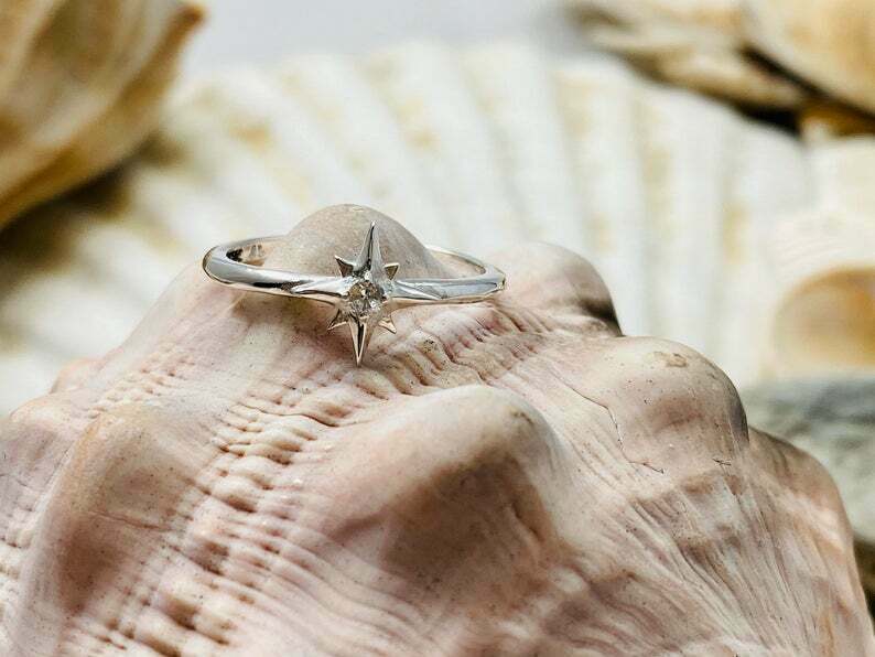 0.1ct Engagement Ring Round Cut Diamond Star Minimalist 14k White Gold Finish