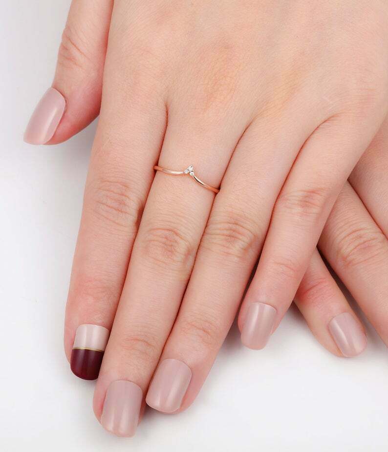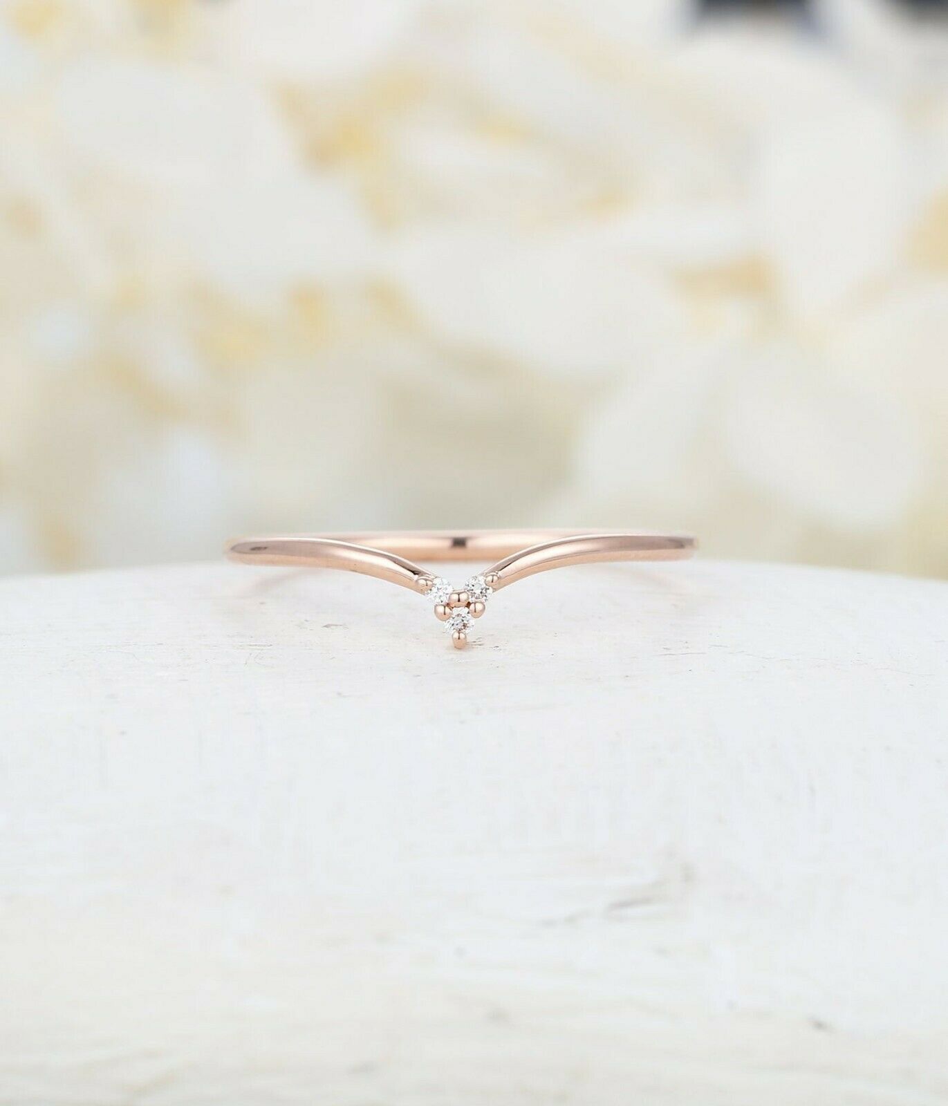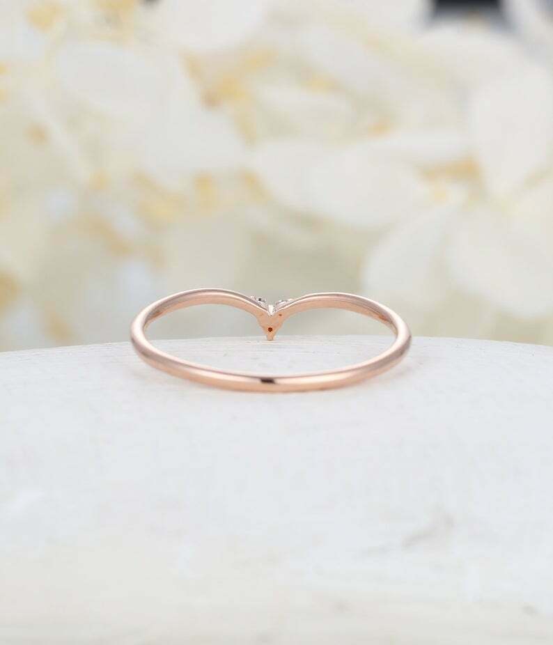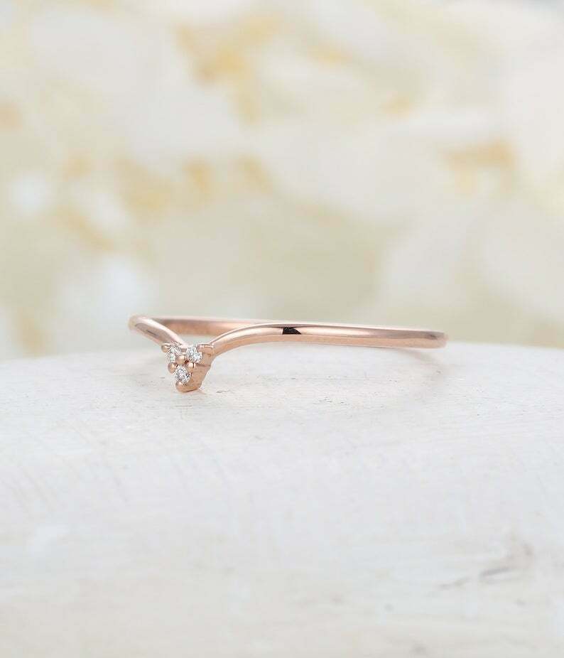 0.1ct Round Cut Diamond Wedding Ring Band Curved Minimalist 14k Rose Gold Finish