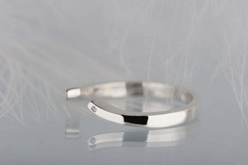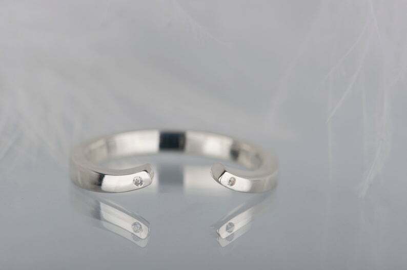 0.1ct Round Cut VVS1D Diamond Wedding Band Open Stackable 14k White Gold Finish