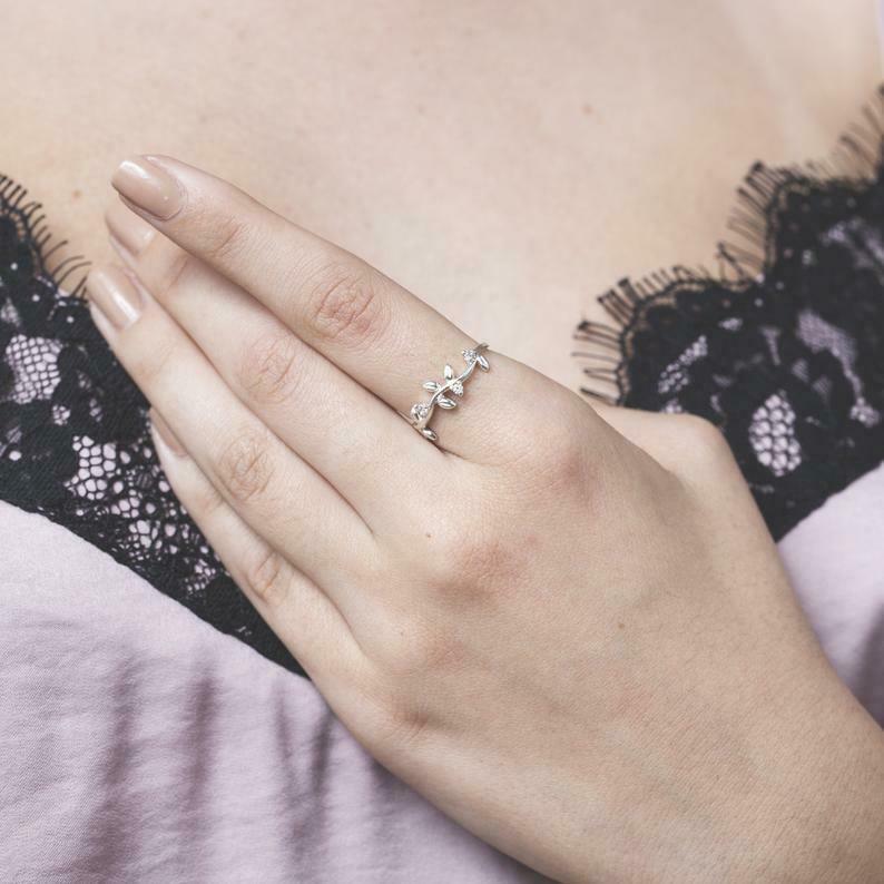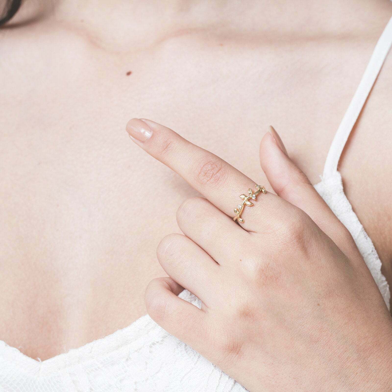 0.1ct Round Cut Diamond Engagement Ring Leaf Petals Minimalist 14k Yellow Gold Over