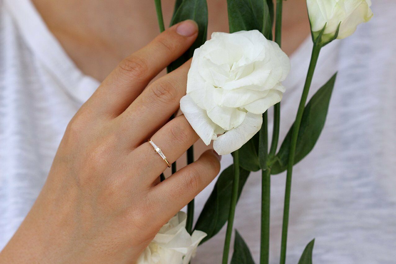 0.25ct Baguette Cut Diamond Engagement Ring 14k Yellow Gold Finish Minimalist Dainty