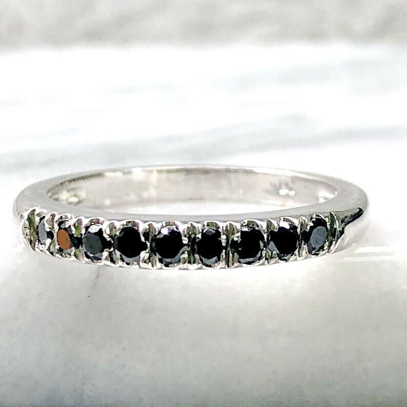 0.25ct Round Cut Black Diamond Wedding Band Stackable 14k White Gold Finish