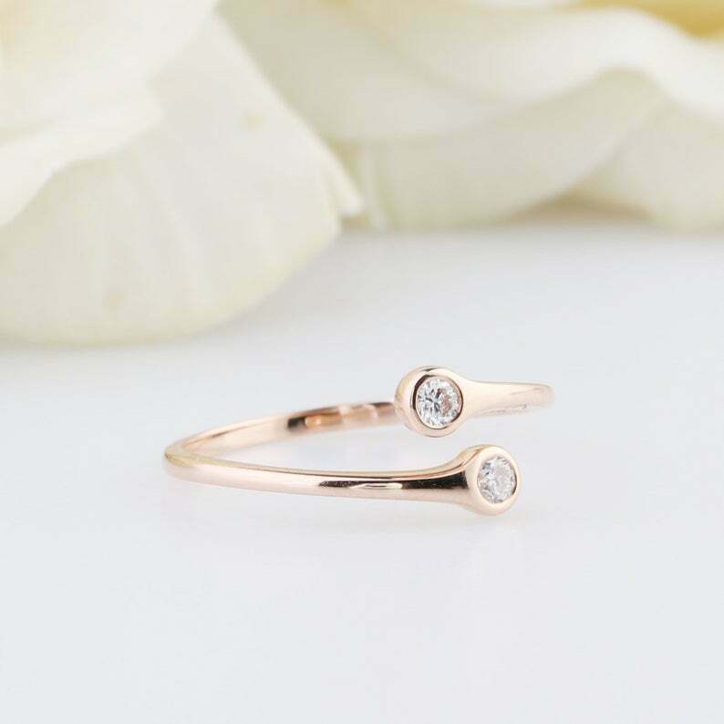 0.25ct Round Cut Diamond Engagement Ring Two Stone Bypass 14k Rose Gold Finish