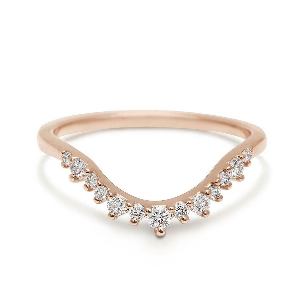 0.25ct Round Cut Diamond Wedding Band 14k Yellow Gold Finish Curved Stackable