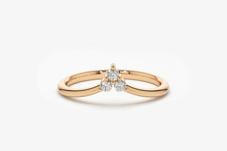0.2ct Engagement Ring Round Cut Diamond Curved Minimalist 14k Rose Gold Finish