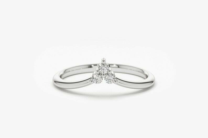0.2ct Engagement Ring Round Cut Diamond Curved Minimalist 14k White Gold Finish