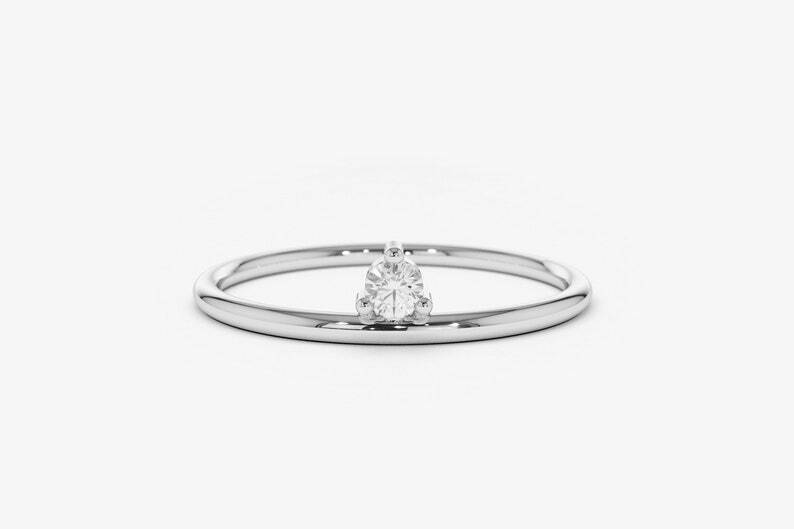 0.2ct Engagement Ring Round Cut Diamond Minimalist Design 14k White Gold Finish