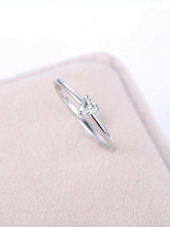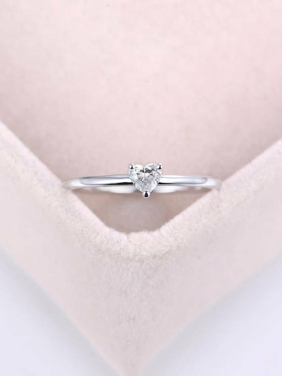 0.2ct Heart Cut Diamond Engagement Ring Minimalist Promise 14k White Gold Finish