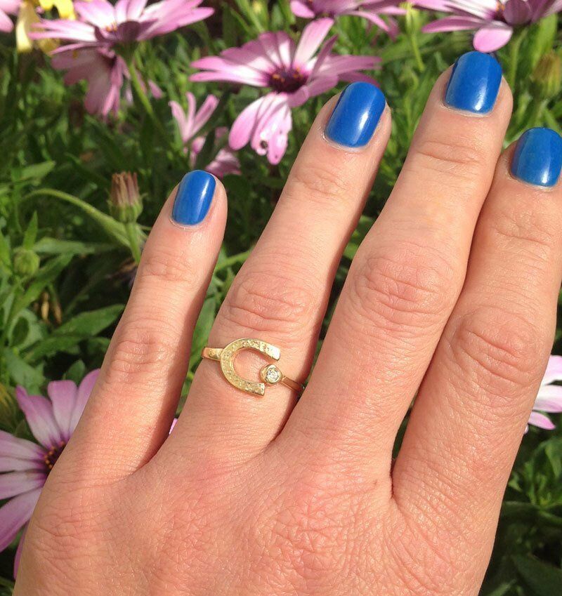 0.2ct Round Cut Diamond Engagement Ring 14k Yellow Gold Finish Lucky Horseshoe