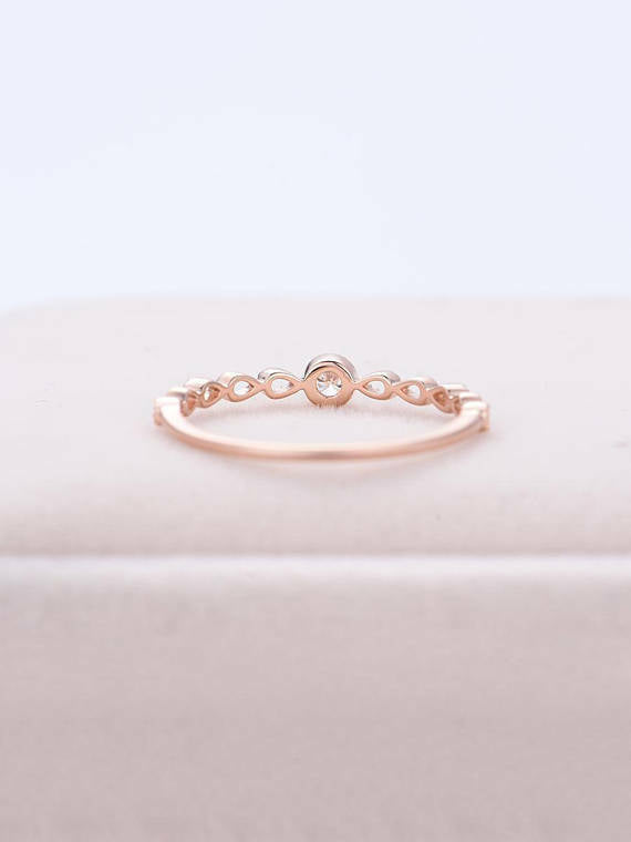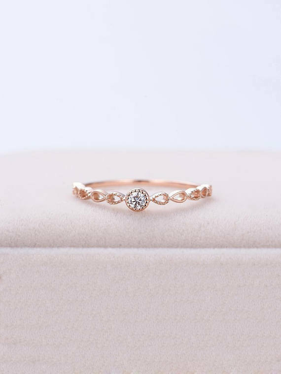 0.2ct Round Cut Diamond Engagement Ring Dainty Minimalist 14k Rose Gold Finish