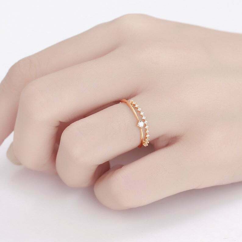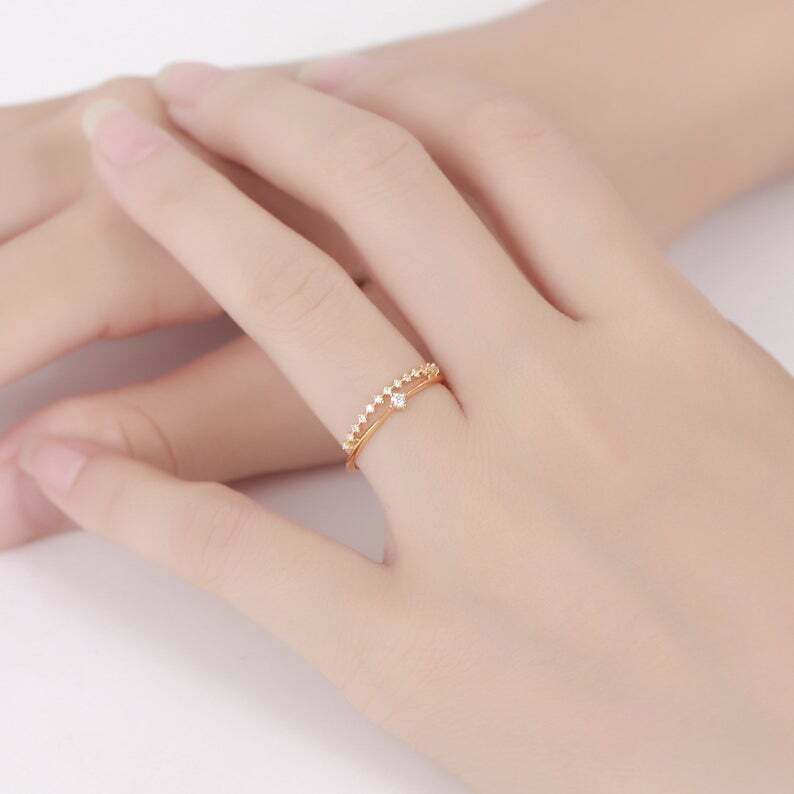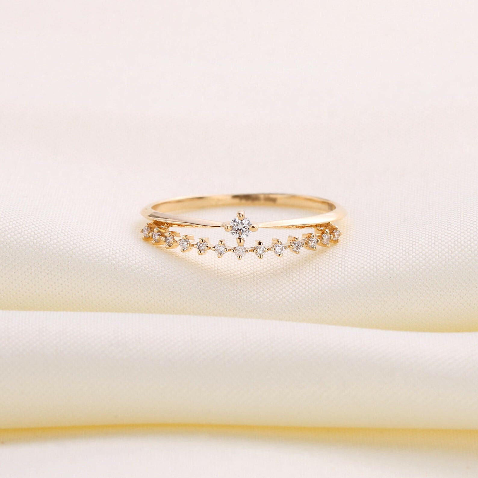0.2ct Round Cut Diamond Wedding Band Petite Split Band 14k Yellow Gold Finish