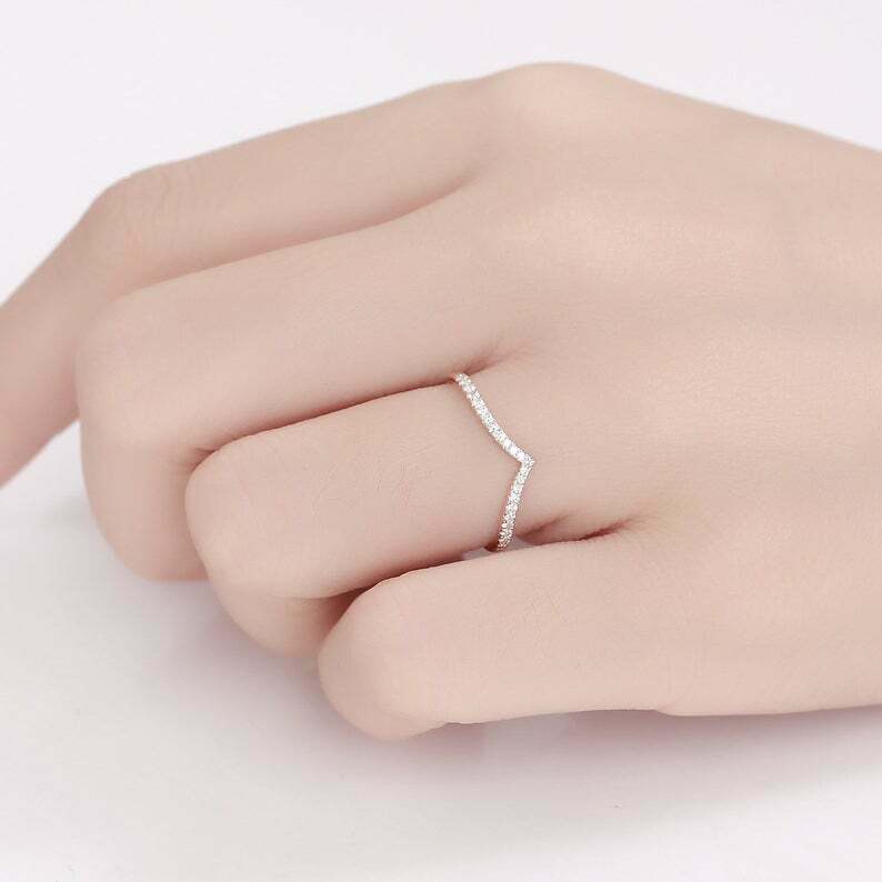 0.2ct Round Cut Diamond Wedding Band V Shaped Petite Curved 14k White Gold Finish