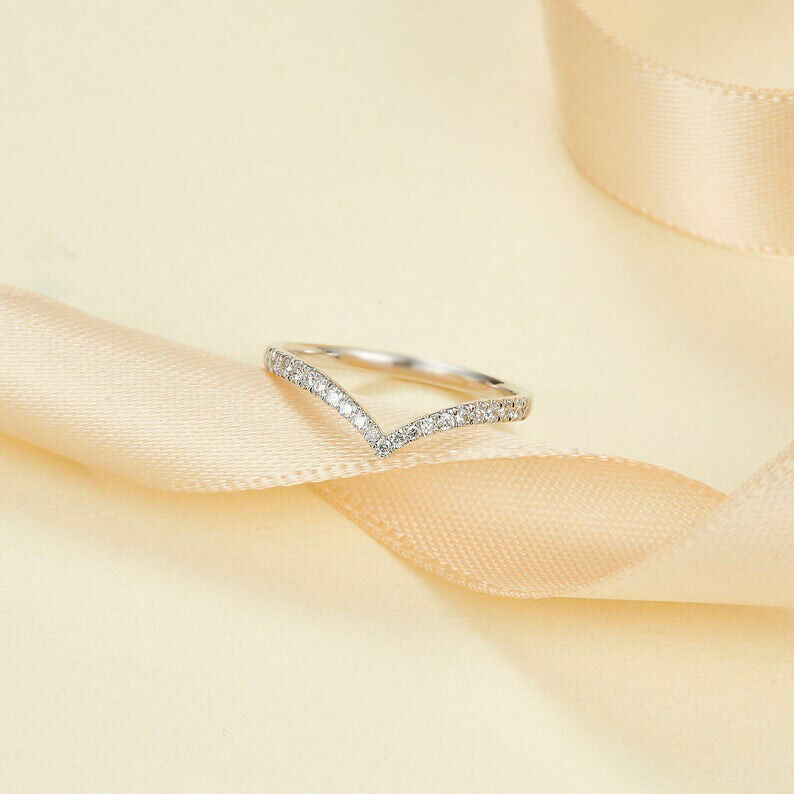 0.2ct Round Cut Diamond Wedding Band V Shaped Petite Curved 14k WhiteGold Finish