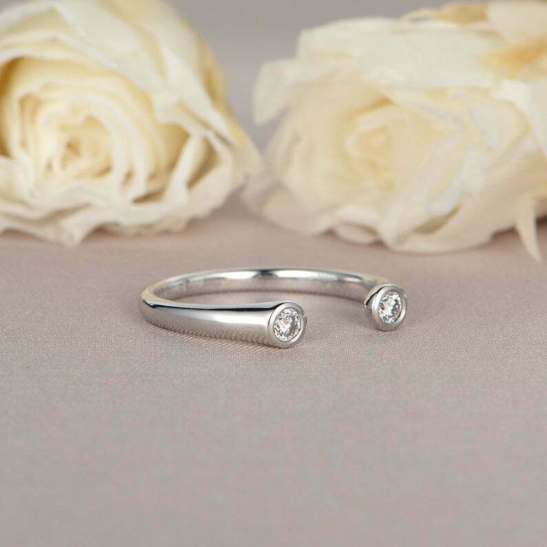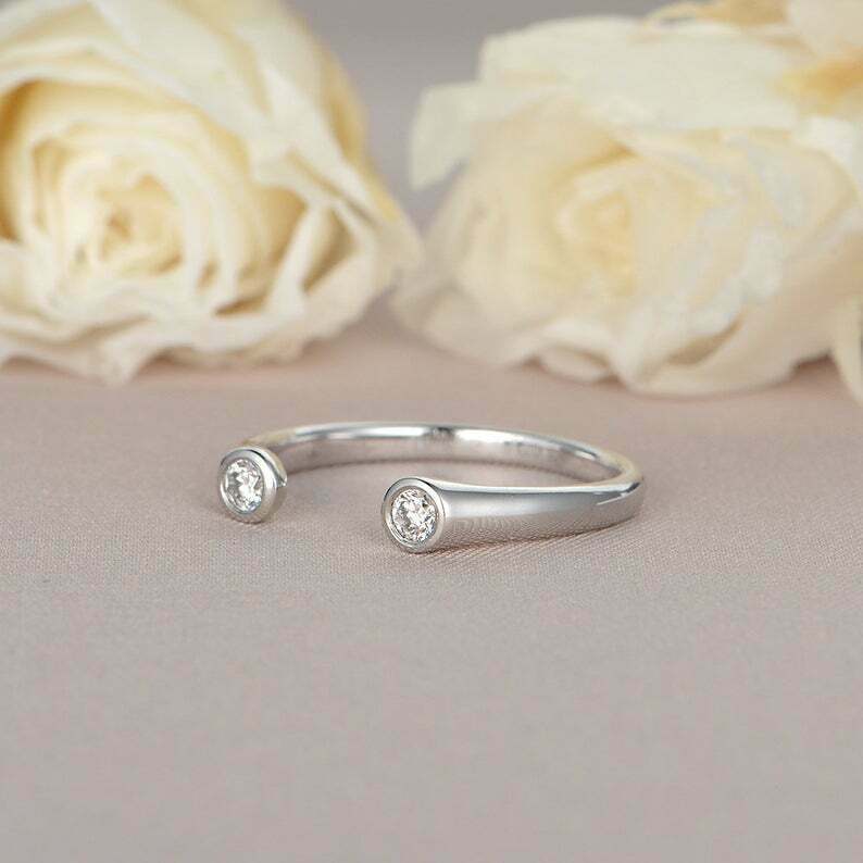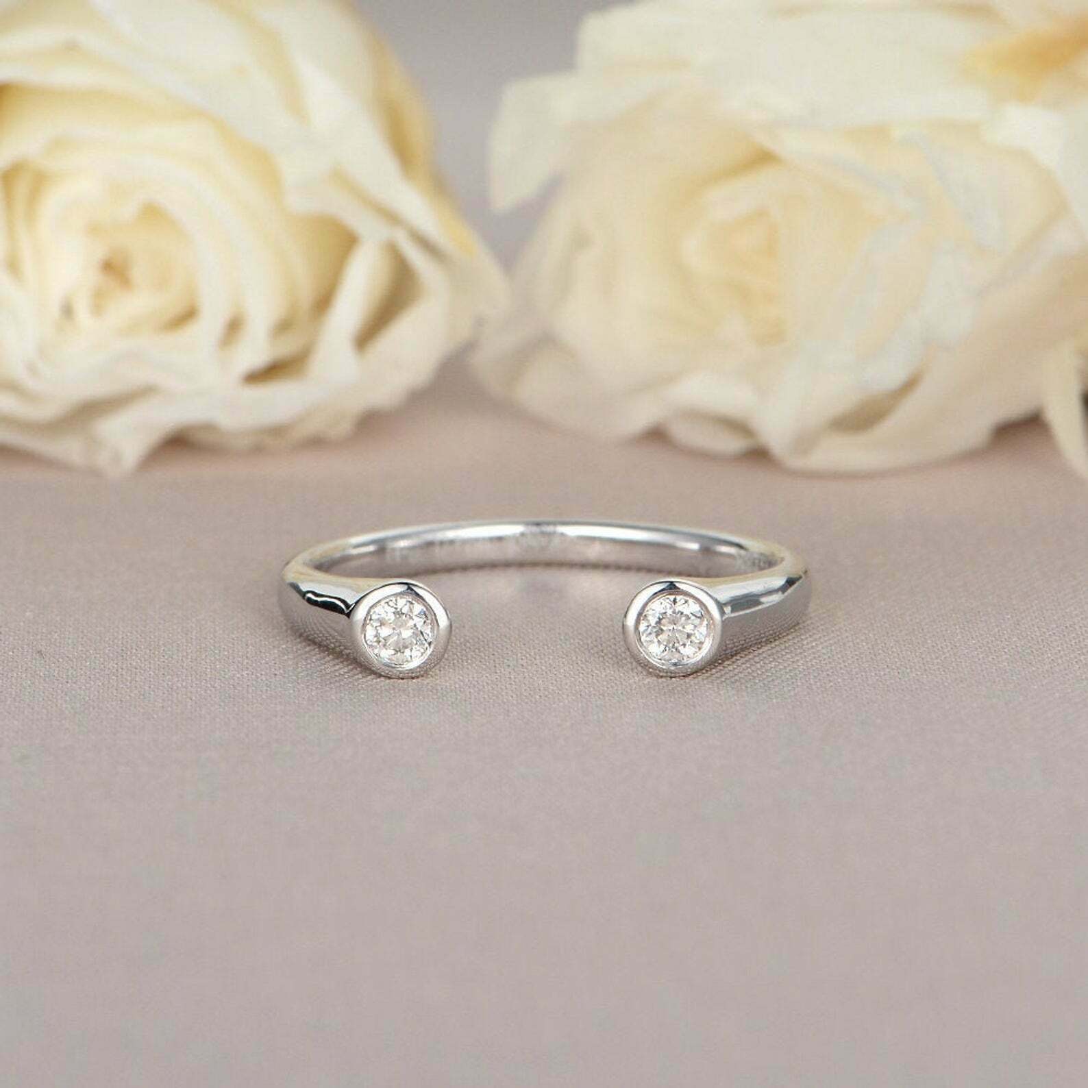 0.2ct Round Cut VVS1D Diamond Bezel Set Open Engagement Ring 14k White Gold Over