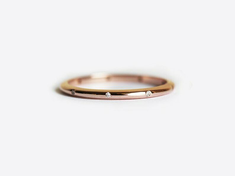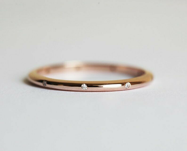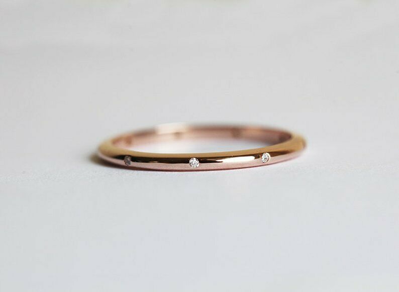 0.2ct Round Diamond Engagement Ring 14k Rose Gold Finish Minimalist Thin Promise