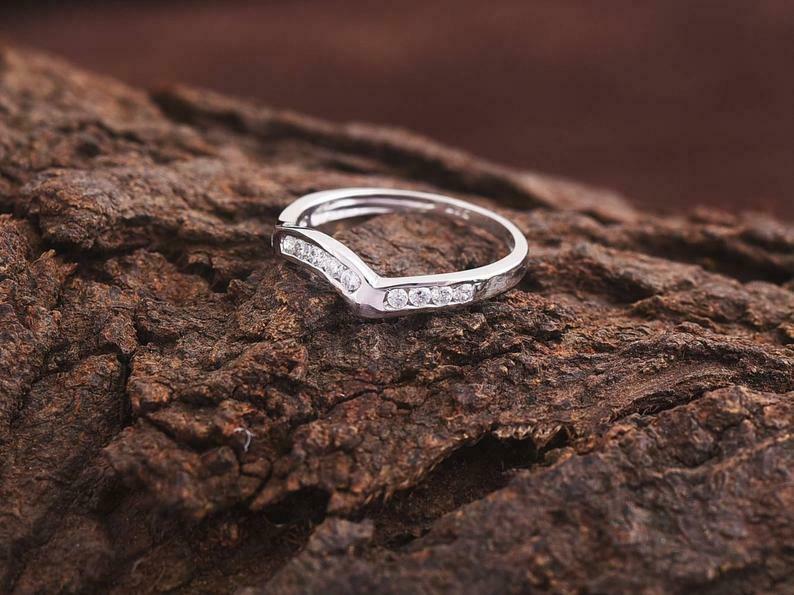 0.2ct Wedding Ring Band Round Cut Diamond Curved Stackable 14k White Gold Finish