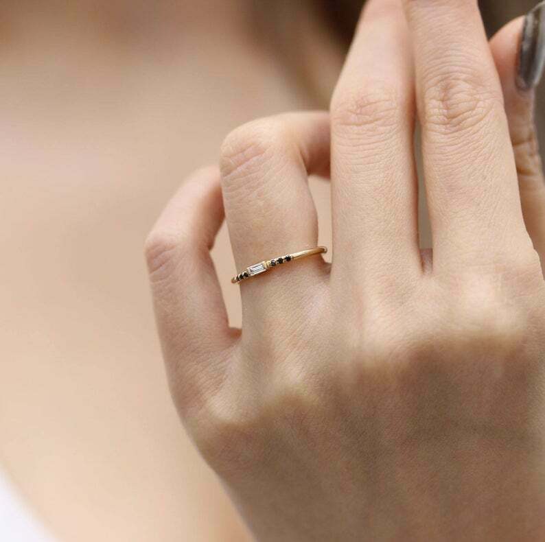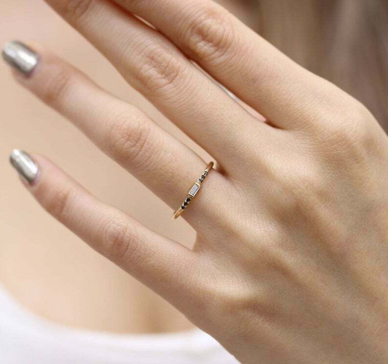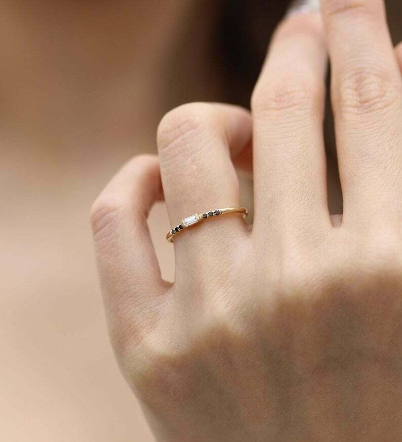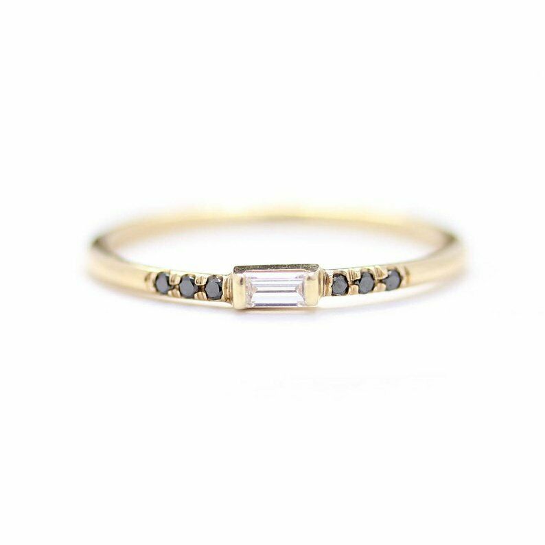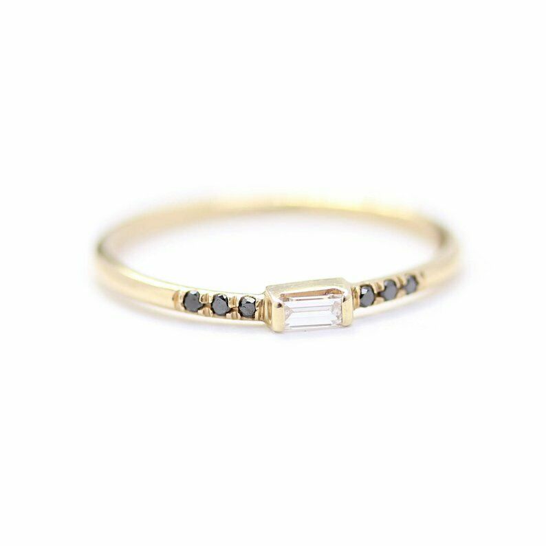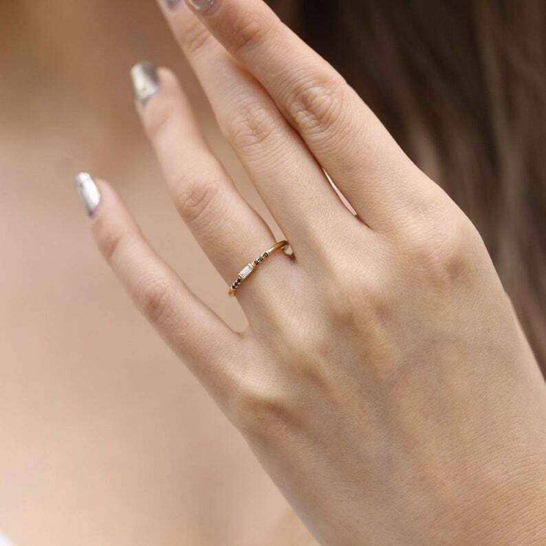 0.3ct Baguette Cut Diamond Engagement Ring Minimalist 14k Yellow Gold Finish
