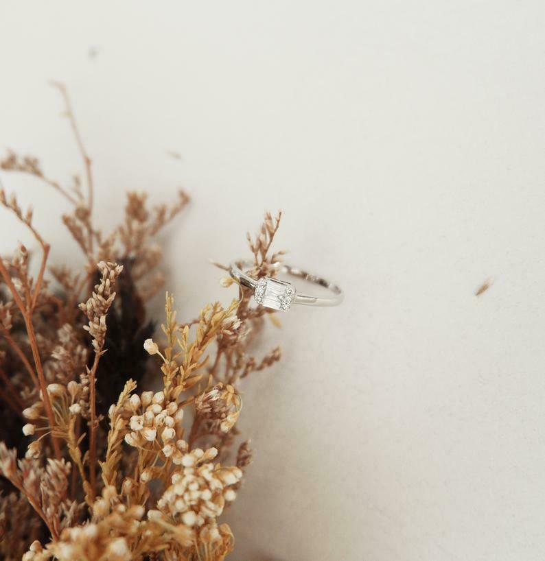 0.3ct Engagement Ring Baguette Cut Diamond Solitaire Design 14k White Gold Finish