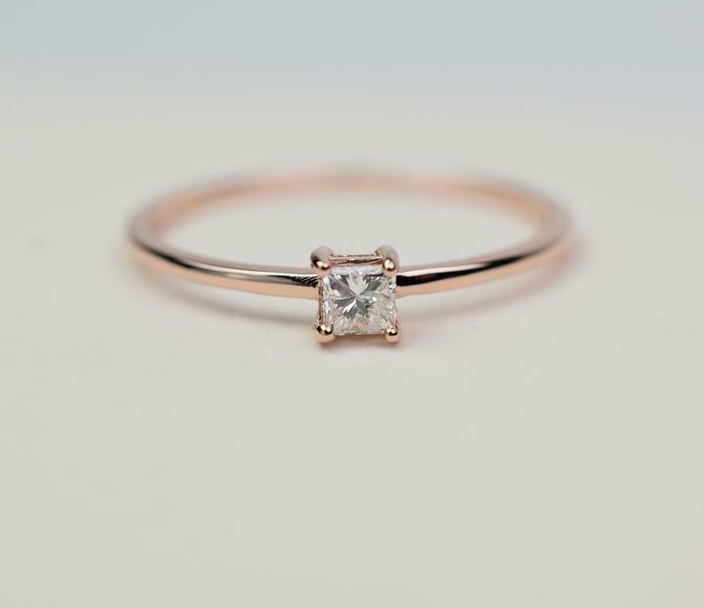 0.3ct Engagement Ring Princess Cut Diamond Solitaire Design 14k Rose Gold Finish