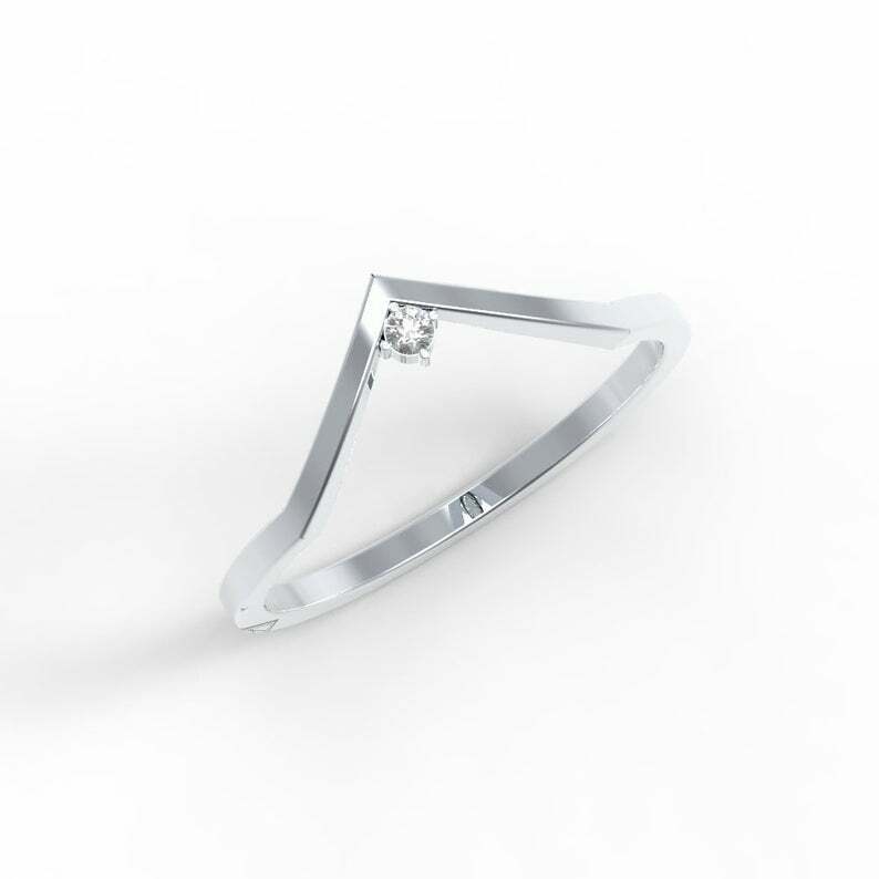 0.3ct Engagement Ring Round Cut Diamond Curved Minimalist 14k White Gold Finish