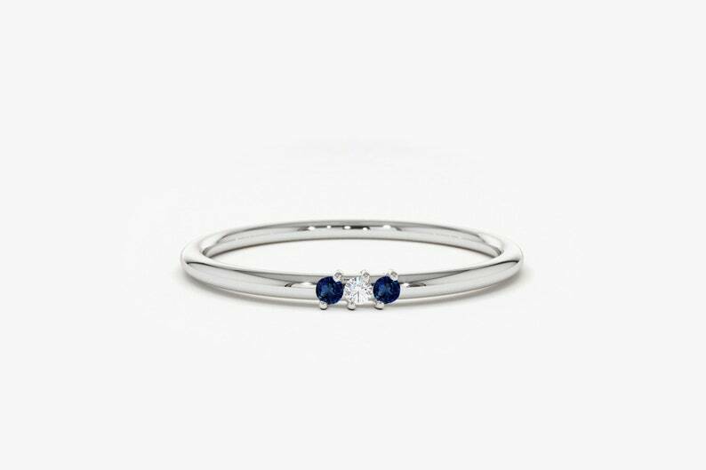 0.3ct Engagement Ring Round Cut Diamond Minimalist Trilogy 14k White Gold Finish