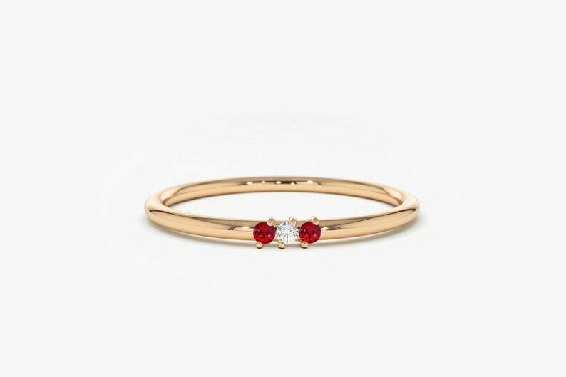 0.3ct Engagement Ring Round Cut Diamond Ruby Accent Trilogy 14k Rose Gold Finish