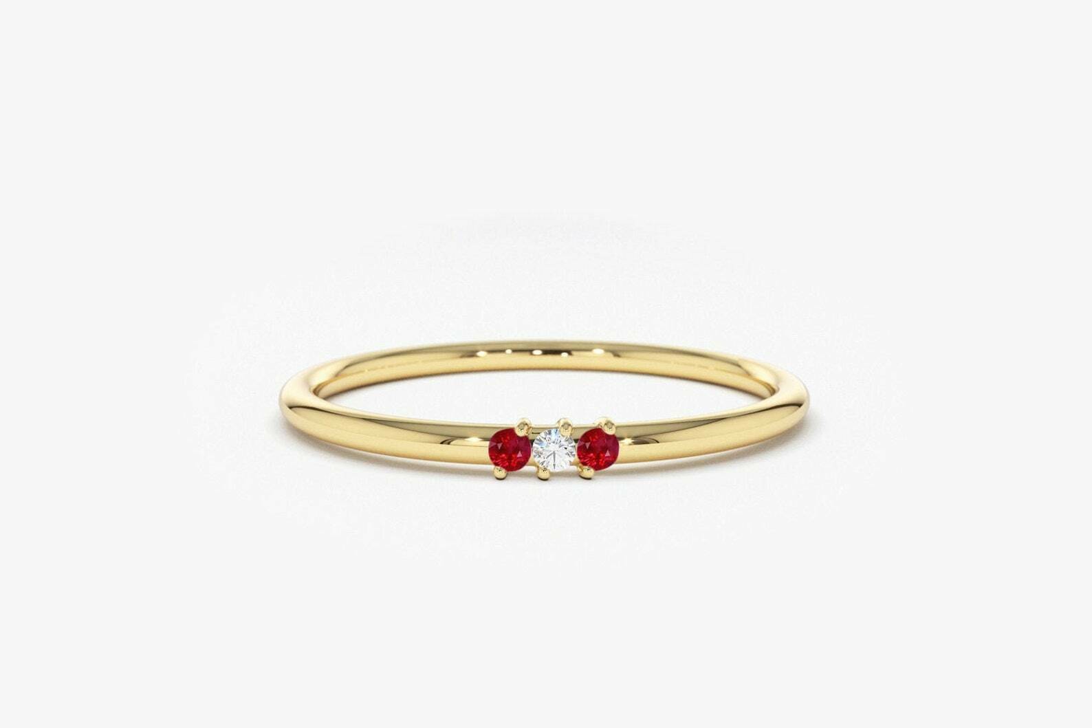 0.3ct Engagement Ring Round Cut Diamond Ruby Accent Trilogy 14k Yellow Gold Finish