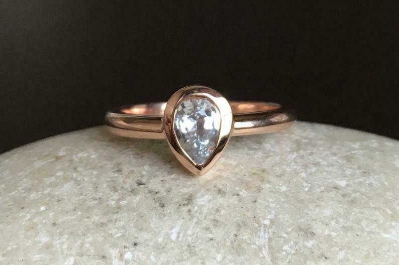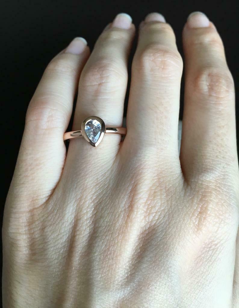 0.3ct Pear Cut Diamond Engagement Ring Bezel Set Solitaire 14k Rose Gold Finish