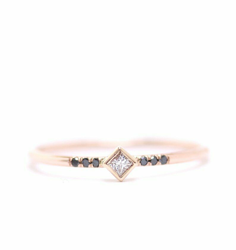 0.3ct Princess Cut Diamond Bezel Set Minimalist Ring 14k Rose Gold Finish