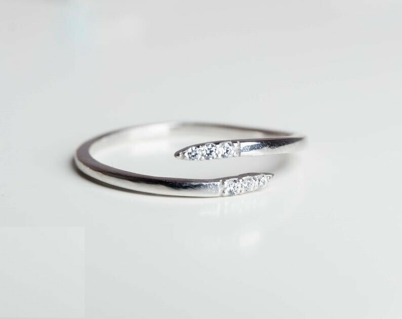 0.3ct Round Cut Diamond Engagement Ring Bypass Minimalist 14k White Gold Finish
