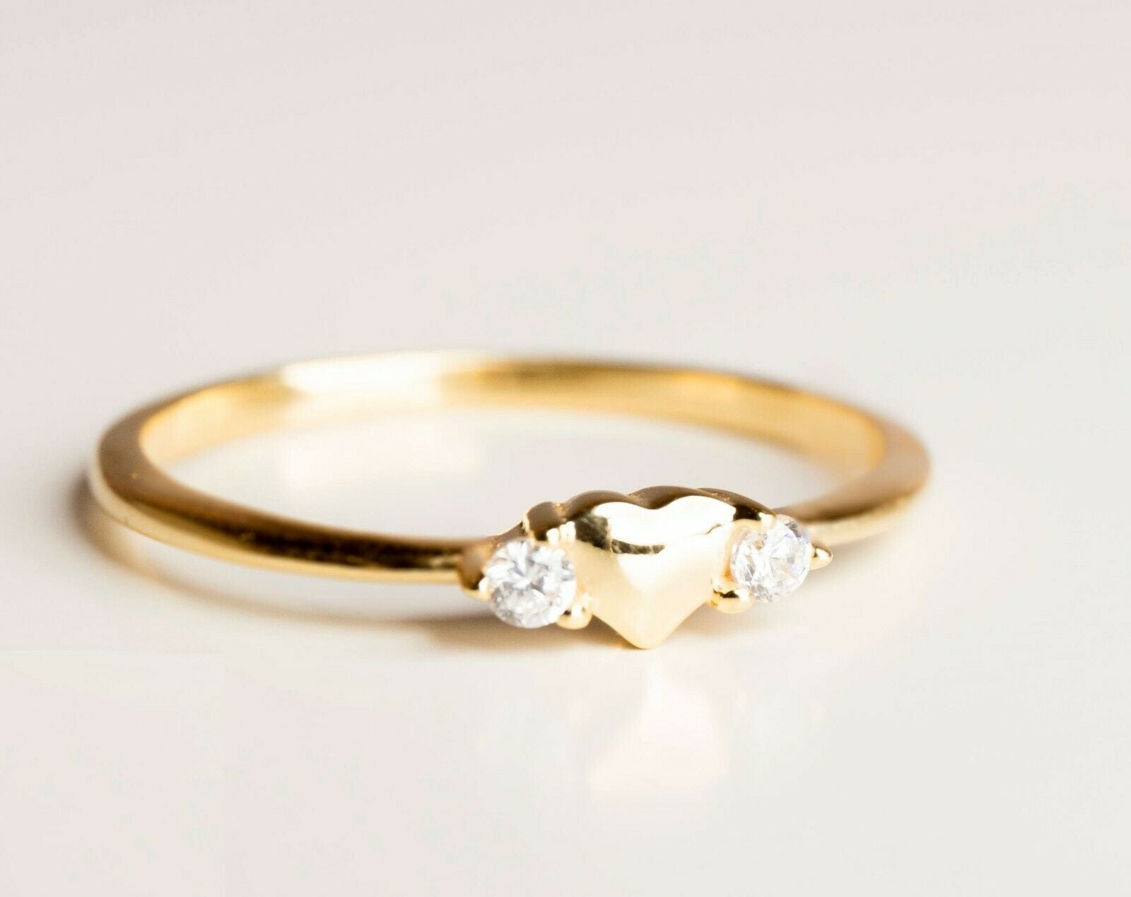 0.3ct Round Cut Diamond Engagement Ring Dainty Minimalist 14k Yellow Gold Finish