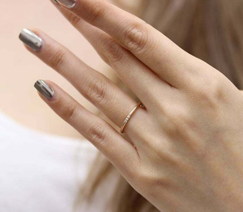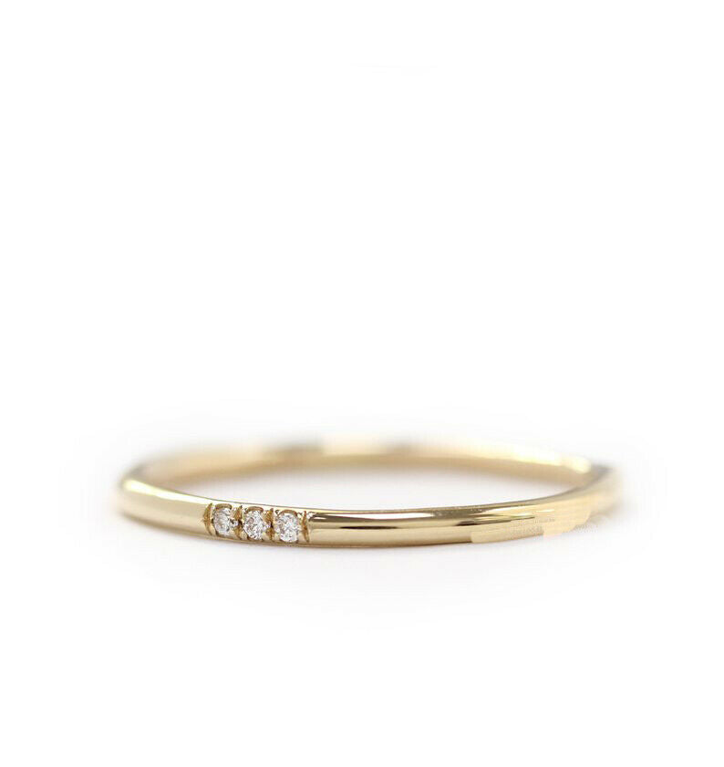 0.3ct Round Cut Diamond Engagement Ring Minimalist Trilogy 14k YellowGold Finish