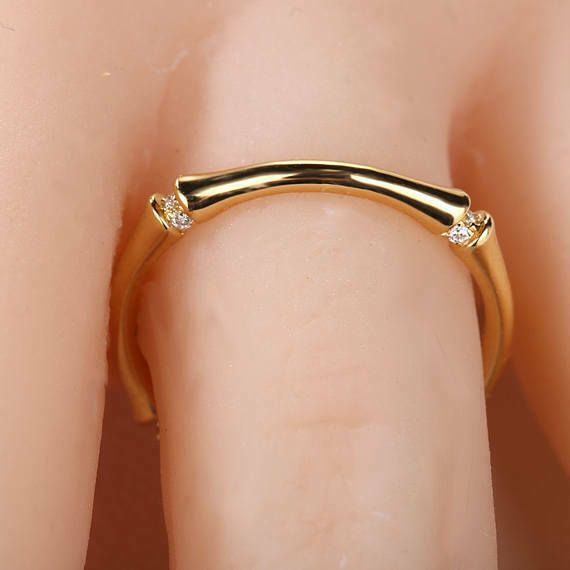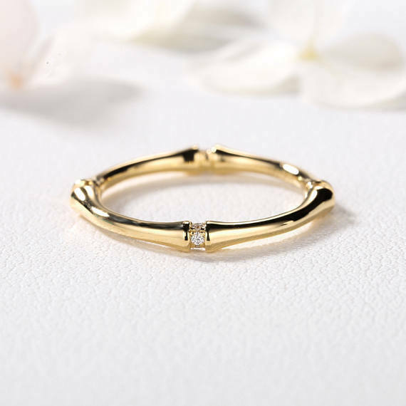 0.3ct Round Cut Diamond Wedding Band Unique Bamboo Design 14k Yellow Gold Finish