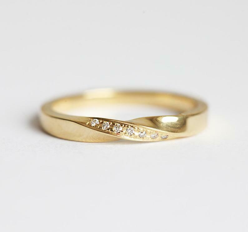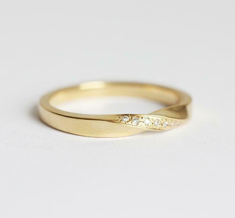 0.3ct Round Cut VVS1 Diamond Twisted Wedding Ring Band 14k Yellow Gold Finish