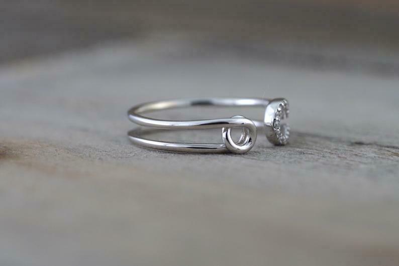 0.3ct Round Cut VVS1D Diamond Engagement Ring 14k White Gold Finish Safety Pin
