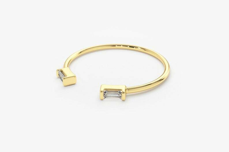 0.3ct Wedding Band Baguette Cut Diamond Open Stackable 14k Yellow Gold Finish