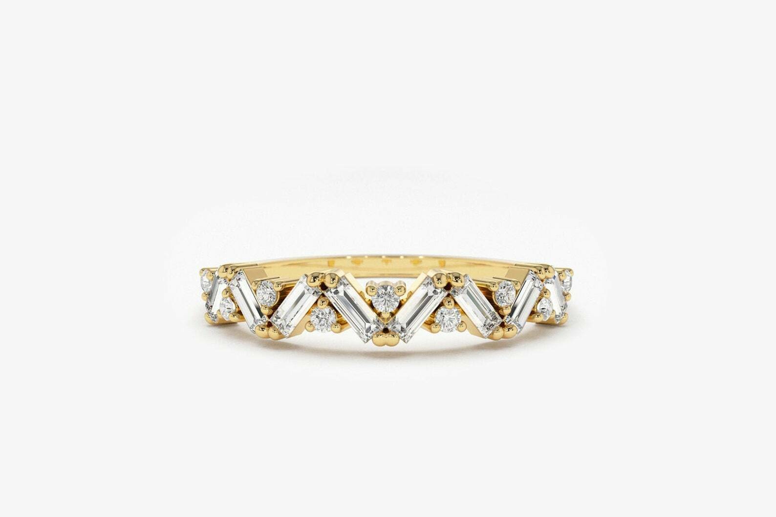 0.45ct Baguette Cut Diamond Half Eternity Stackable Band 14k Yellow Gold Finish