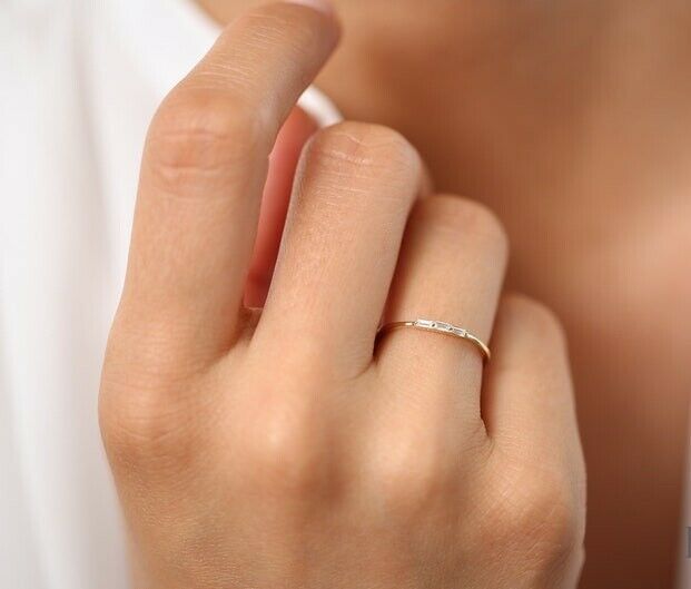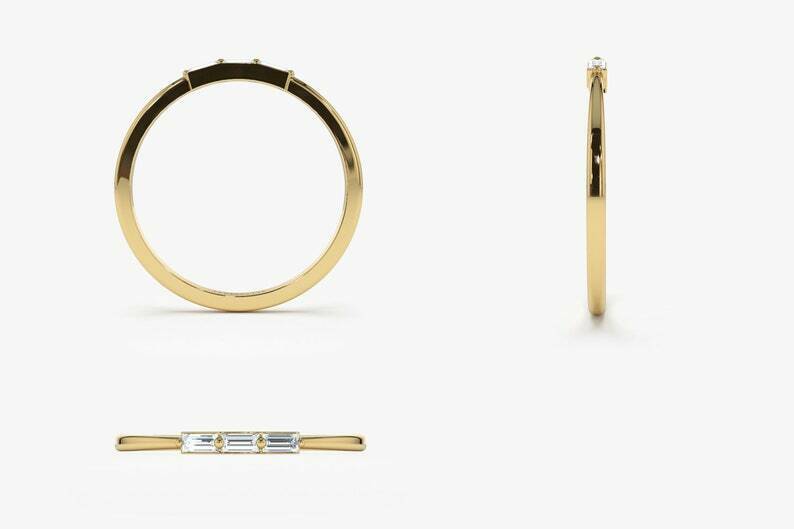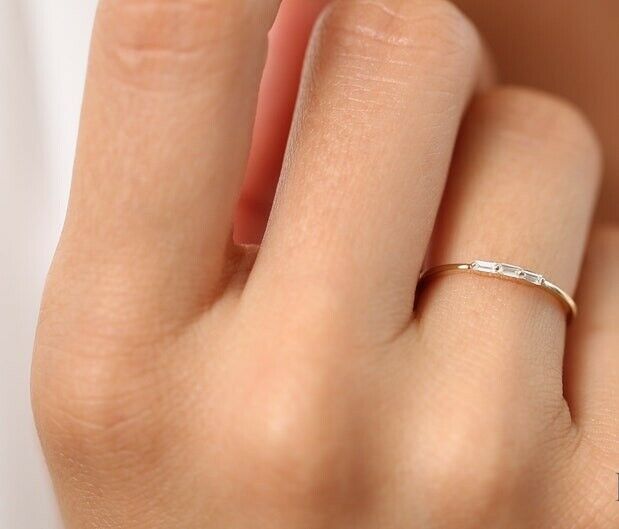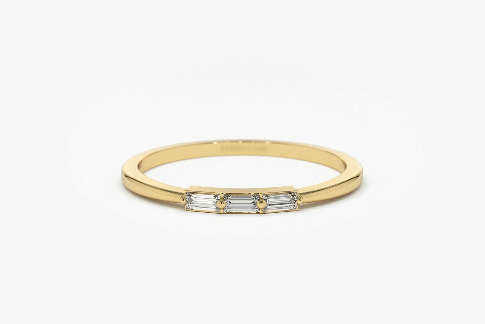 0.4ct Engagement Ring Baguette Diamond Trilogy Minimalist 14k Yellow Gold Finish