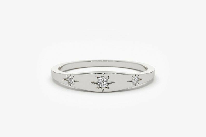 0.4ct Engagement Ring Round Cut Diamond Trilogy Star Design 14k White Gold Finish