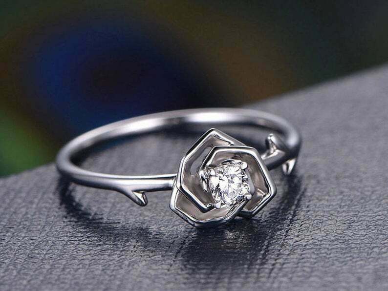 0.4ct Round Cut Diamond Engagement Ring Flower Solitaire 14k White Gold Finish