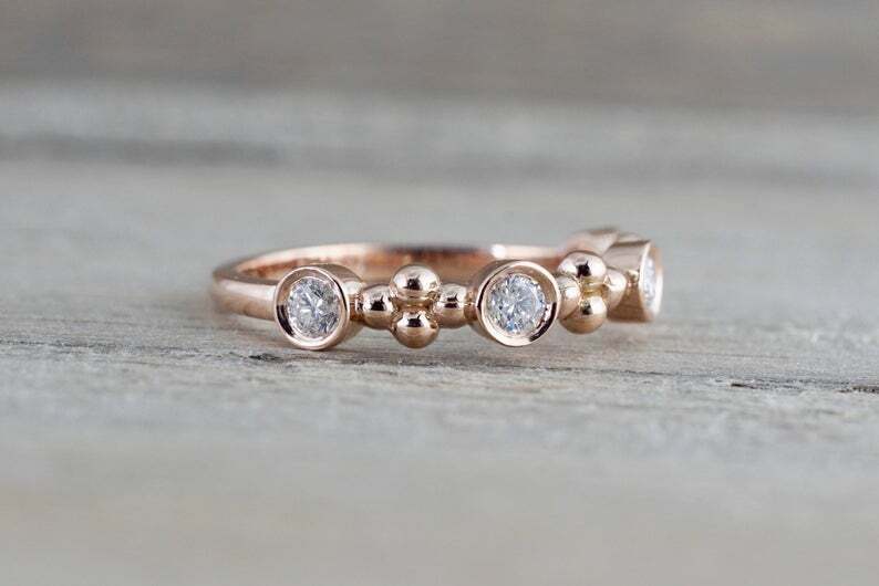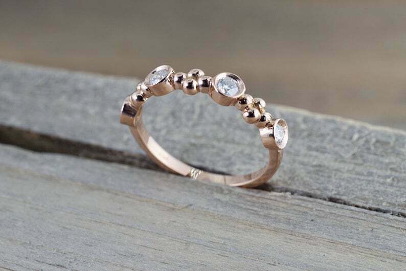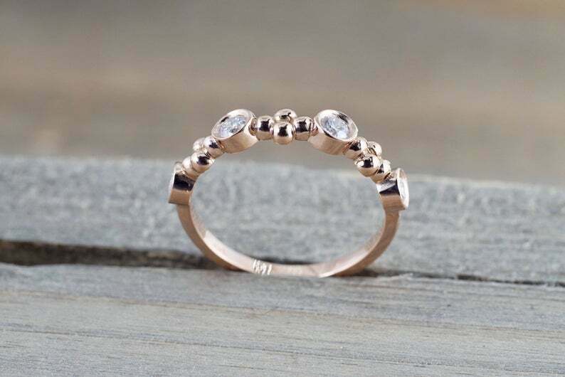 0.4ct Round Cut Diamond Wedding Band 14k Rose Gold Finish Bezel Set Minimalist