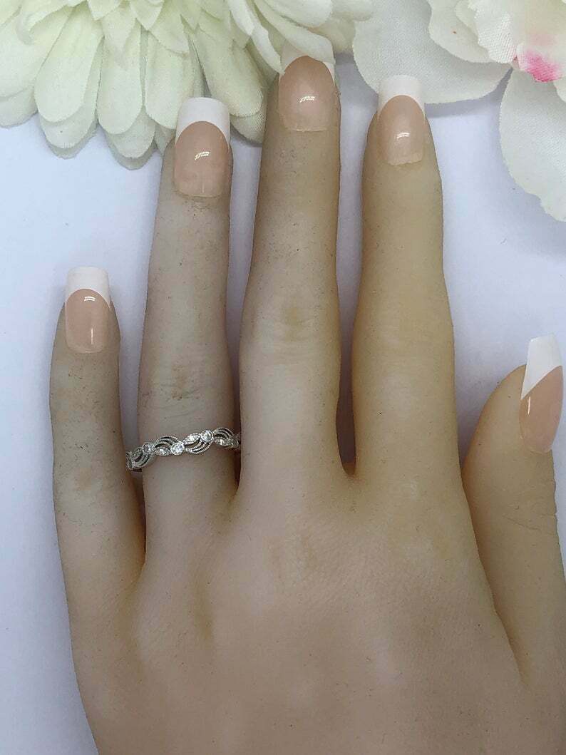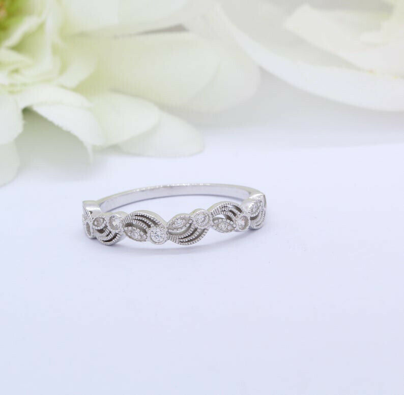 0.4ct Round Diamond Wedding Band Filigree Vintage Inspired 14k White Gold Finish