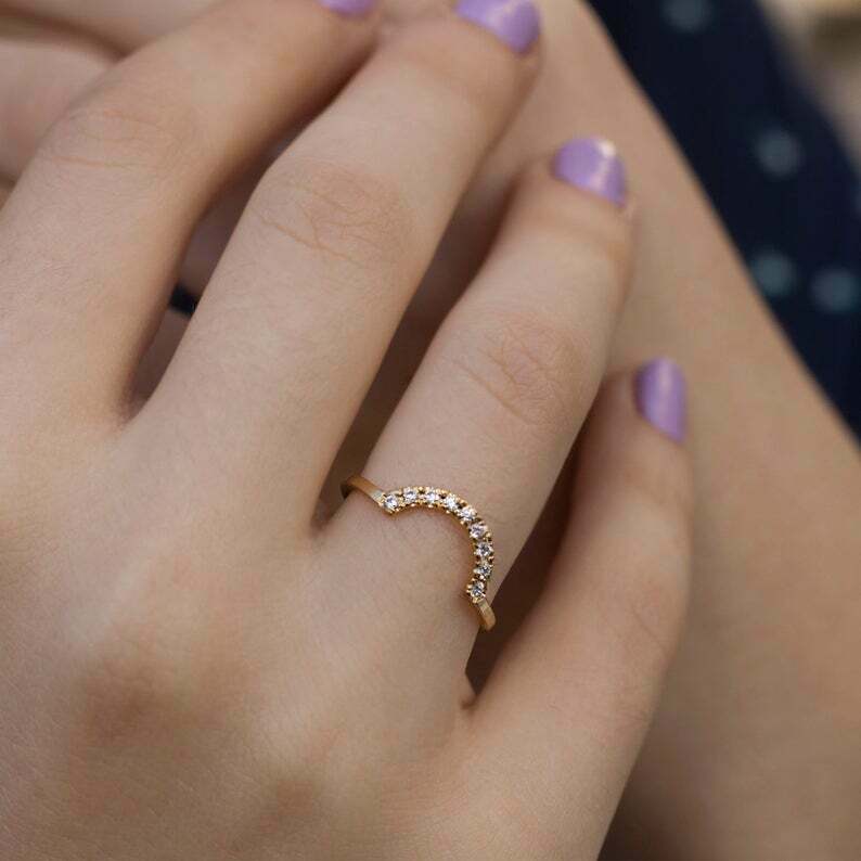 0.4ct Wedding Ring Band Round Cut Diamond Curved Minimalist 14k Yellow Gold Over