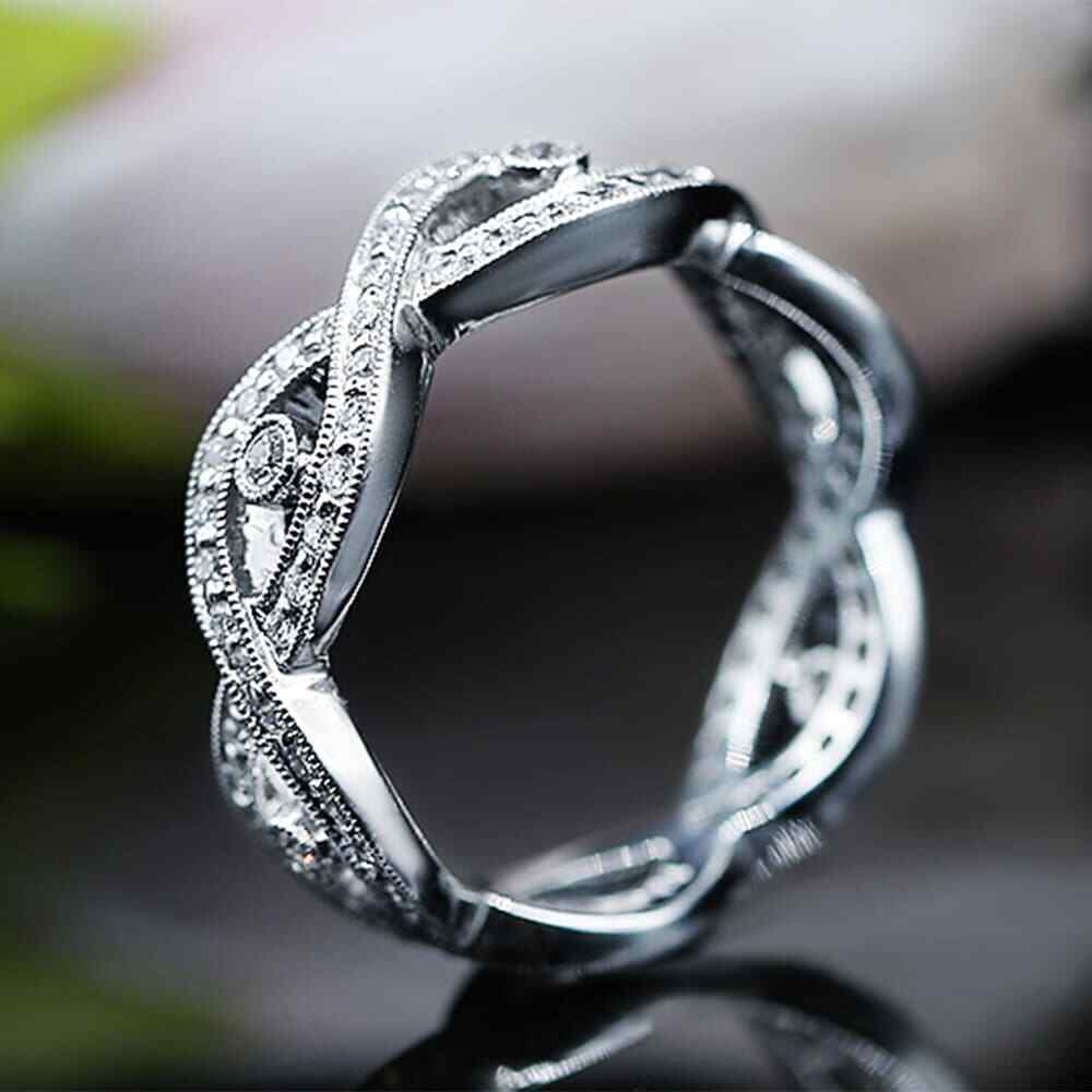 0.57ct Round Cut VVS1D Diamond Wedding Ring Band 14k White Gold Finish Infinity
