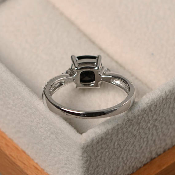 0.5ct Cushion Cut Black Diamond Solitaire Engagement Ring 14k White Gold Finish