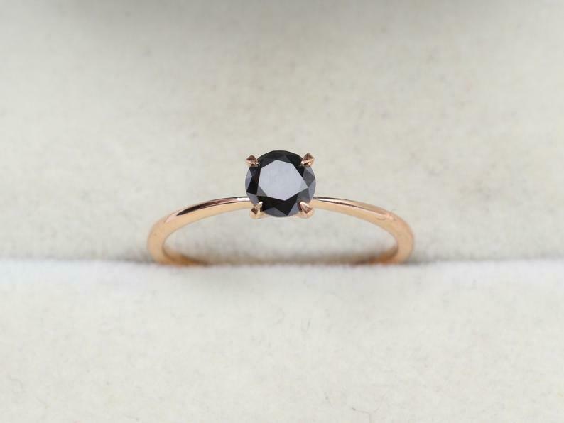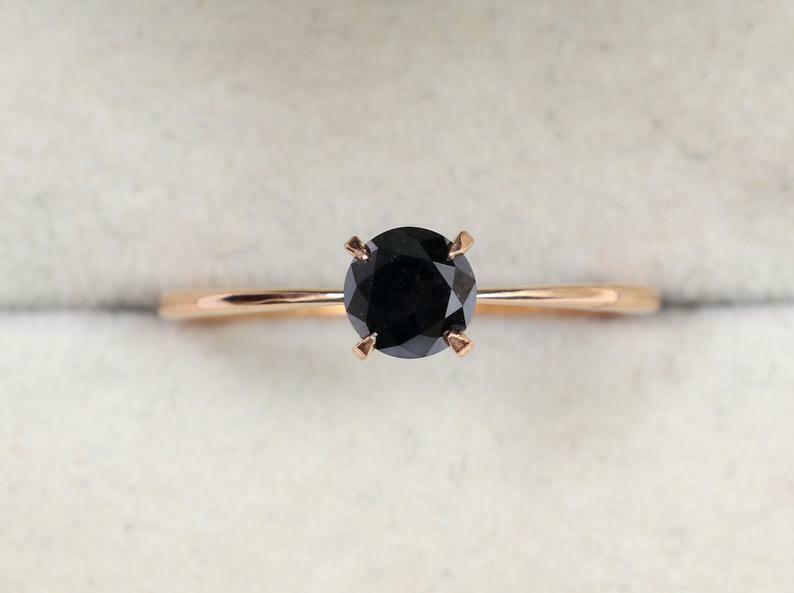 0.5ct Engagement Ring Round Cut Black Diamond Solitaire 14k Rose Gold Finish