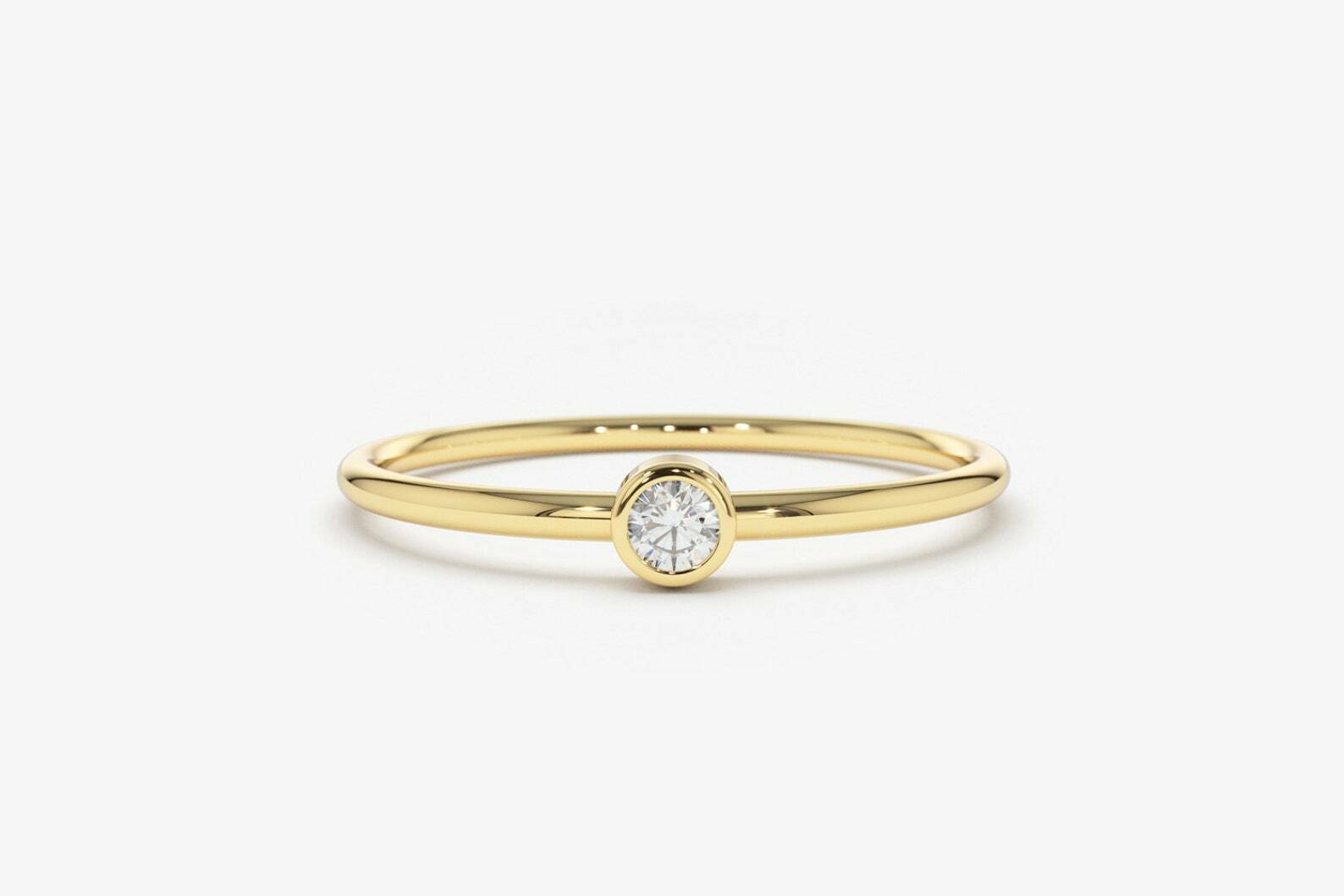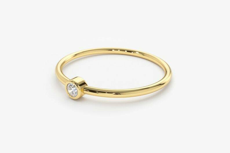 0.5ct Engagement Ring Round Cut Diamond Bezel Set Solitaire 14k Yellow Gold Finish